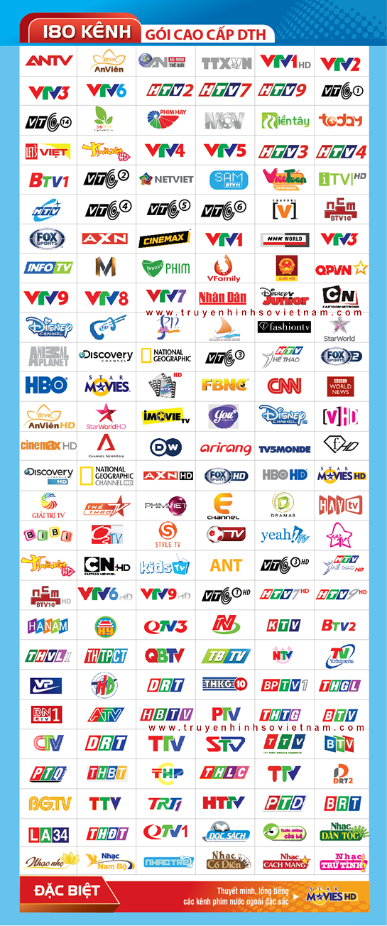 • Số kênh xem được: 180 kênh, trong đó có 30 kênh HD