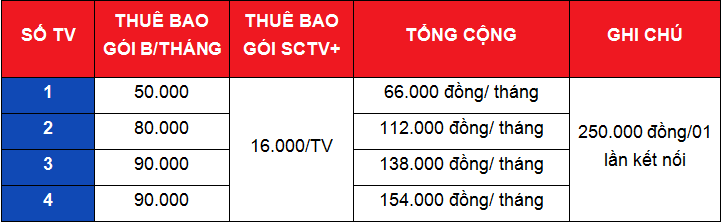 • Khách hàng sau khi đăng ký gói SCTV+ sẽ sử dụng SCTV+ mãi mãi, không hủy được để trở về gói A, B bình thường.