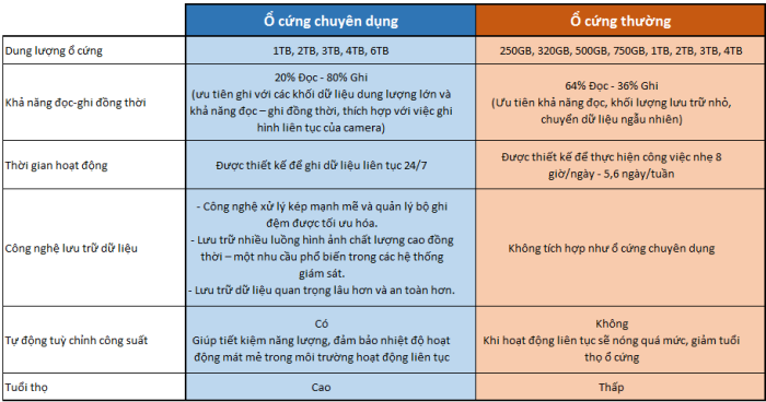 Với giá thành không chênh lệch nhiều giữa 2 loại ổ cứng, khi lắp cho hệ thống camera quan sát bạn không nên tận dụng lại hay mua ổ cứng dùng cho máy tính để bàn nhằm tiết kiệm chi phí ban đầu mà hãy sử dụng loại ổ cứng chuyên dụng dùng cho camera nhằm đảm bảo cho tuổi thọ cũng như hiệu năng của hệ thống.