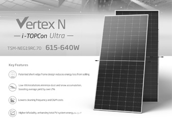 Vertex N (700 W+ bifacial): là mô-đun công suất siêu cao tích hợp công nghệ n-type TOPCon, bifacial (hấp thụ 2 mặt) và cell 210mm – thích hợp cho hệ thống điện mặt trời quy mô lớn như nhà máy điện, trang trại năng lượng.