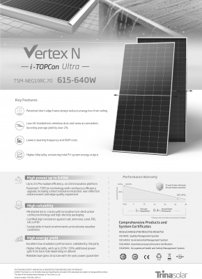 Vertex (550–670 W): là dòng mô-đun phổ thông dành cho dự án thương mại, mái công nghiệp, hoặc trang trại nông nghiệp điện mặt trời – nổi bật với thiết kế 144 cell và công nghệ cell lớn 210mm cho hiệu suất ổn định, giá hợp lý.